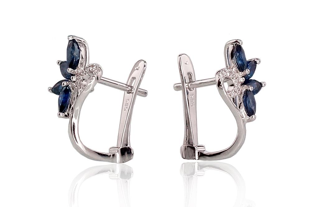 Materiāls: Baltais Zelts 585° Svars: 1.99 g Akmens: Briljanti (0,03Ct), Safīrs (0,794Ct)