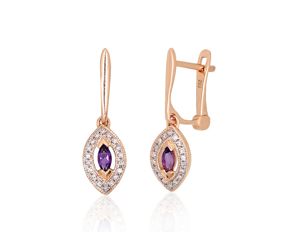 Materiāls: Sarkanais Zelts 585°, rodijs (pārklājums) Svars: 1.88 g Akmens: Briljanti (0,07Ct), Ametists