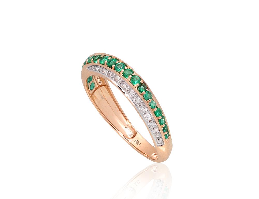 Materiāls: Sarkanais Zelts 585°, rodijs (pārklājums) Akmens: Briljanti (0,216Ct), Smaragds (0,39Ct)