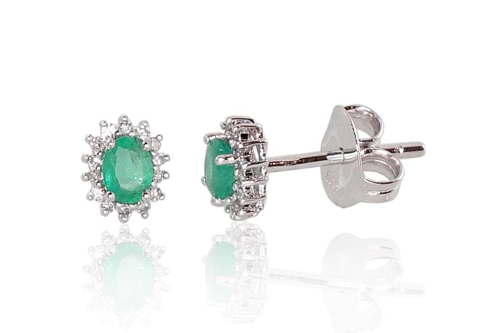 Materiāls: Baltais Zelts 585° Svars: 1.48 g Akmens: Briljanti (0,077Ct), Smaragds (0,338Ct)